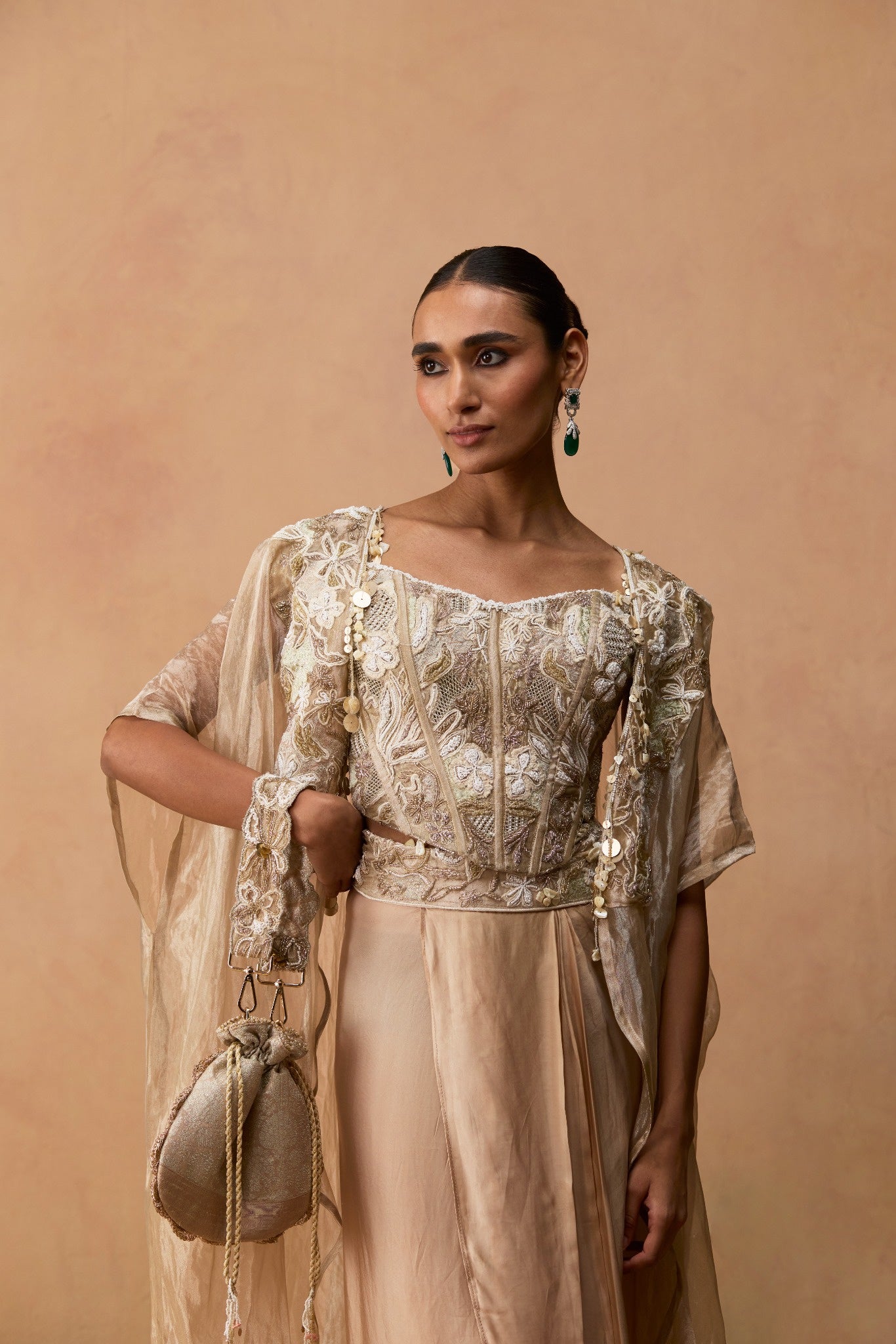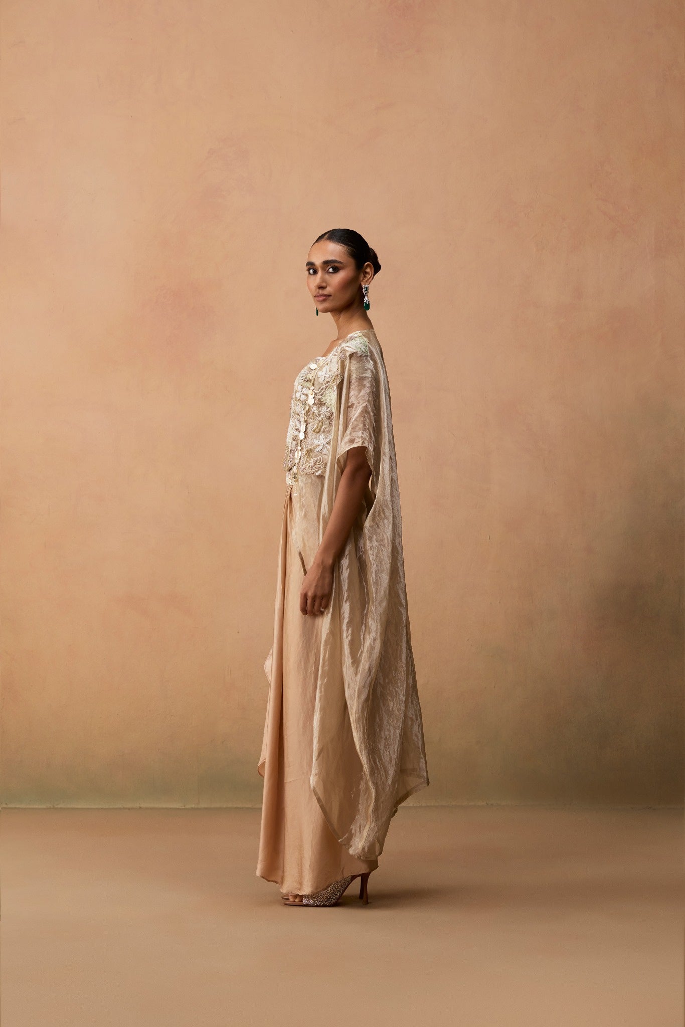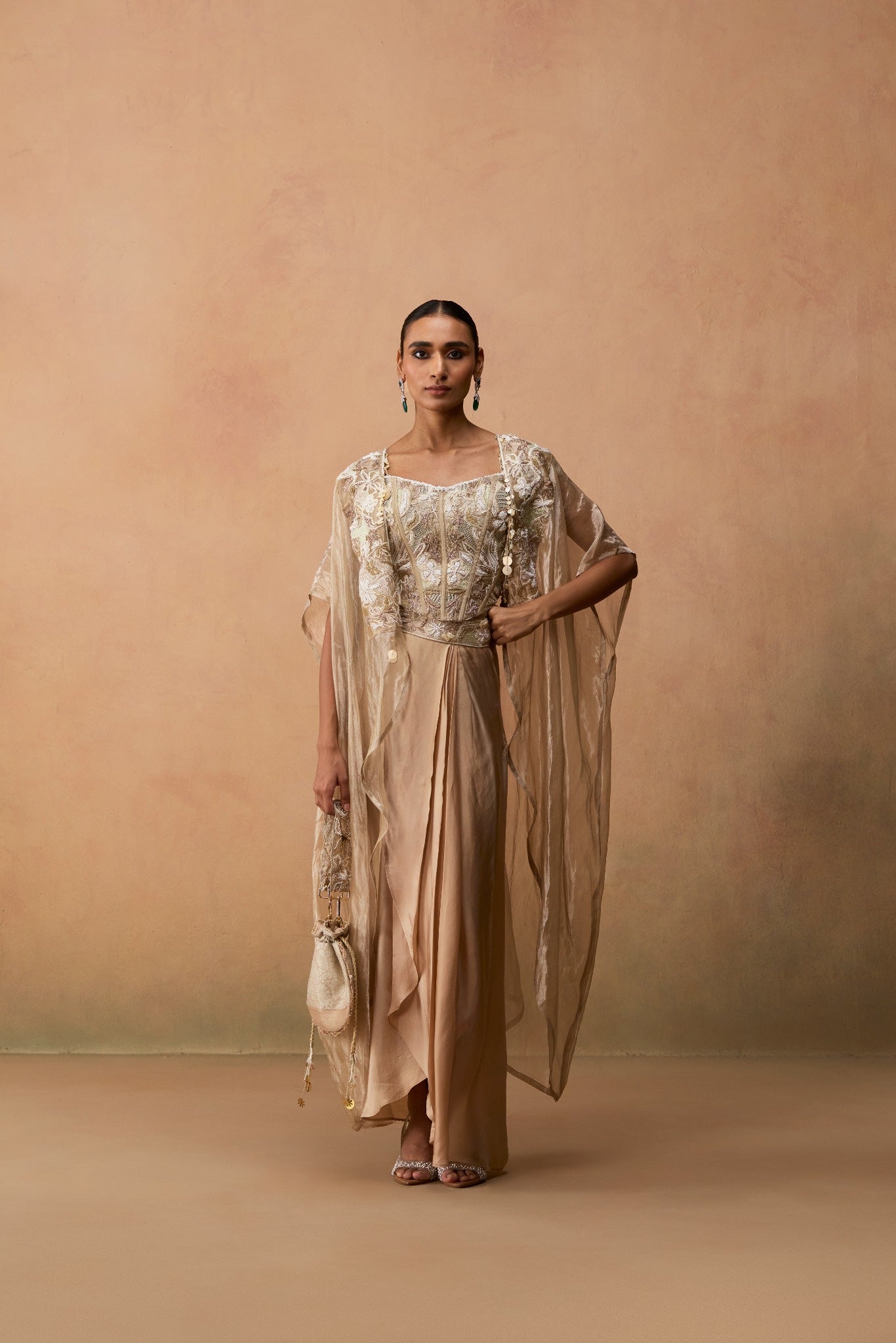 WITH CAPE AND SILK SATIN